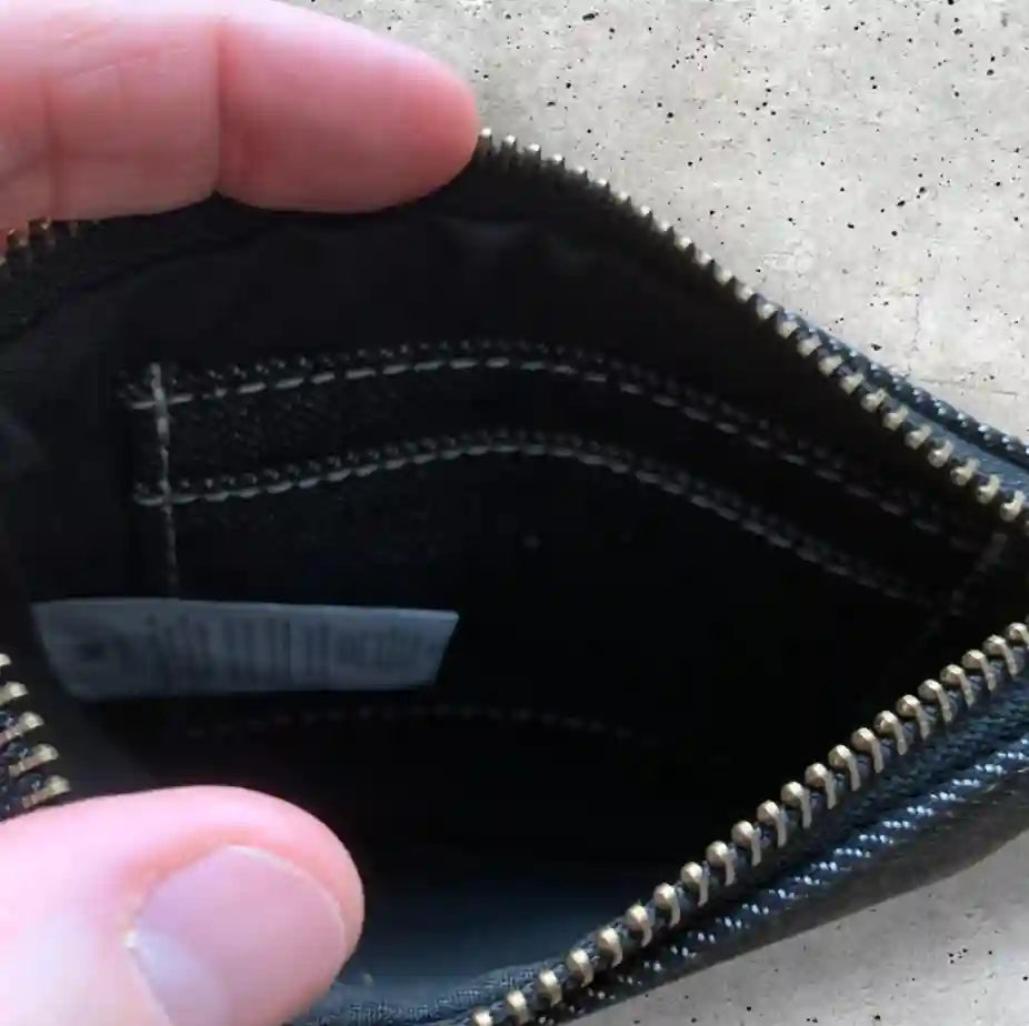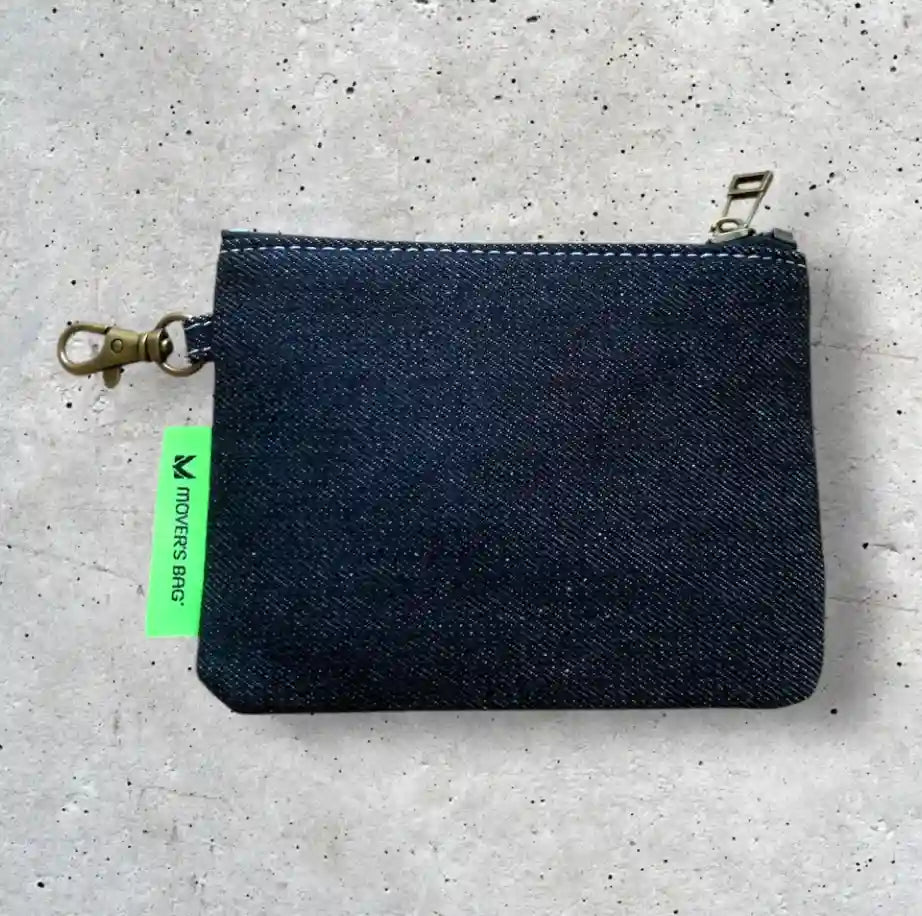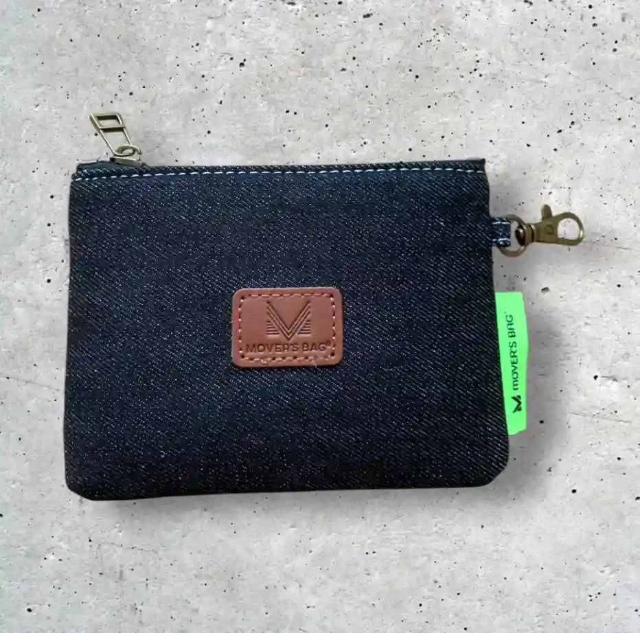 Monedero vaquero de alta calidad, color negro. Forrado por dentro con un pequeño bolsillo interior tarjetero. Lateral con mosquetón para enganchar en el bolsillo izquierdo del bolso básico. Medidas: 16 cms ancho 12 cms alto.